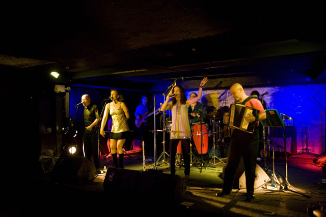 The lineup for this show was Stefanie, Marco, Jack, Paul, Morgan and Igor with Squeezebox Ira on accordion, Emi Yabuno on keys, Chuck Mackinnon on trumpet, Rob Susman on trombone, Lily White on tenor sax and Bob Ramos on percussion -- big band!