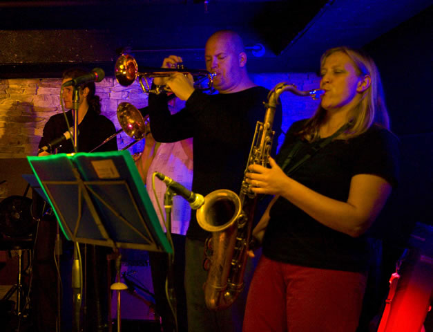 The lineup for this show was Stefanie, Marco, Jack, Paul, Morgan and Igor with Squeezebox Ira on accordion, Emi Yabuno on keys, Chuck Mackinnon on trumpet, Rob Susman on trombone, Lily White on tenor sax and Bob Ramos on percussion -- big band!